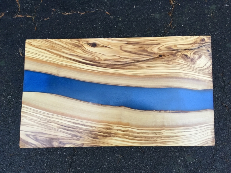 Choose a river design, an ocean finish, our special “River Valley” design (clear epoxy on top of a blue river), or epoxy detailing of knotholes, etc. Epoxy is as strong as wood and we have turned even so called “waste wood” into art that a full grown adult could stand on.